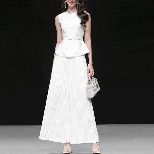 화이트 셋업 민소매 벨티드 플리츠 롱스커트 투피스 예복 피로연