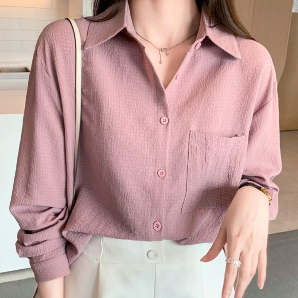 여자 핑크블라우스 핑크셔츠 긴팔 카라 와이셔츠 오버핏 루즈핏 예쁜 오피스룩