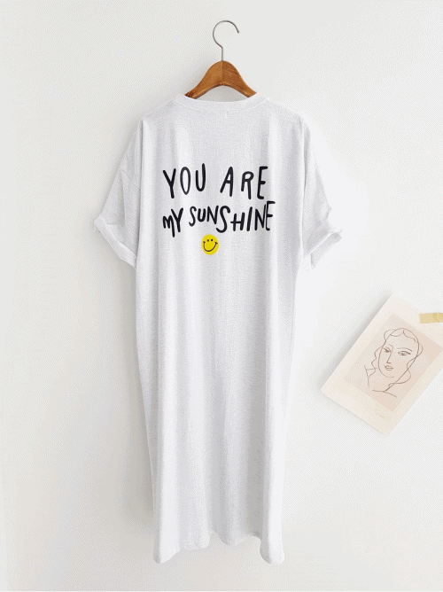 [🌈Sunshine Smile ops] 😊스마일 레터링 프린트 트임 코튼 면 롱원피스 여름원피스 파자마원피스 홈웨어원피스 반팔원피스 잠옷원피스 여름휴가 바캉스룩 데일리원피스