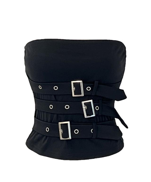 크롭 벨트 탱크탑 / 워터밤 튜브탑 빈티지 쓰리벨트 크롭탑
