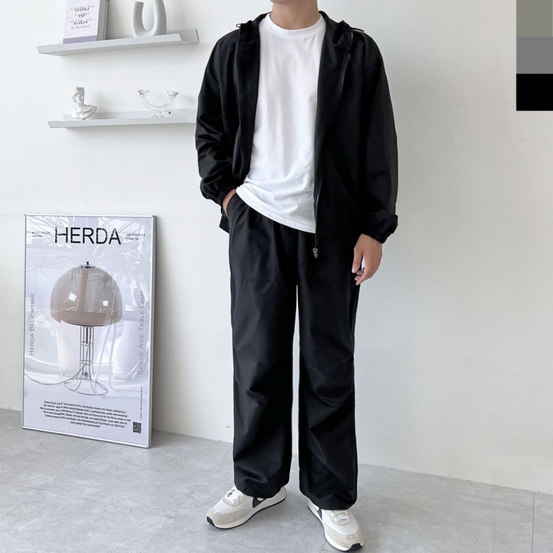 남자 트레이닝복 세트 후드 바람막이 점퍼 스트링 와이드 팬츠 Jl08