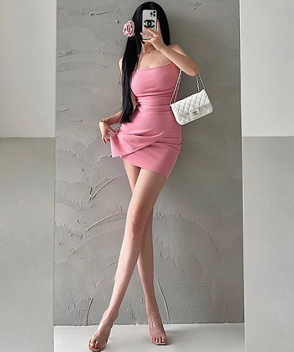 미니스 페이크 레이어드 심플 민소매 언발 미니원피스