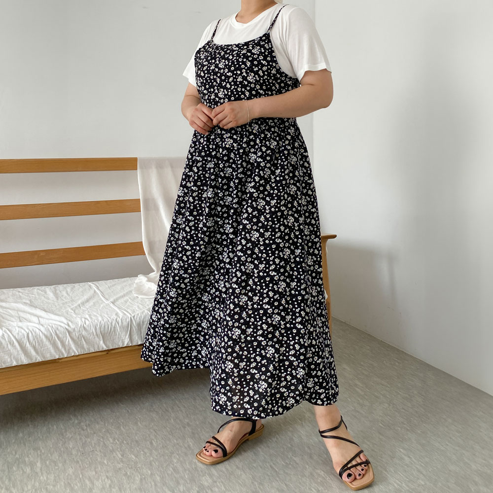[ 냉장고원피스/77가능 ] 플라워 쉬폰 롱 뷔스티에 원피스 휴양지 바캉스 여행룩