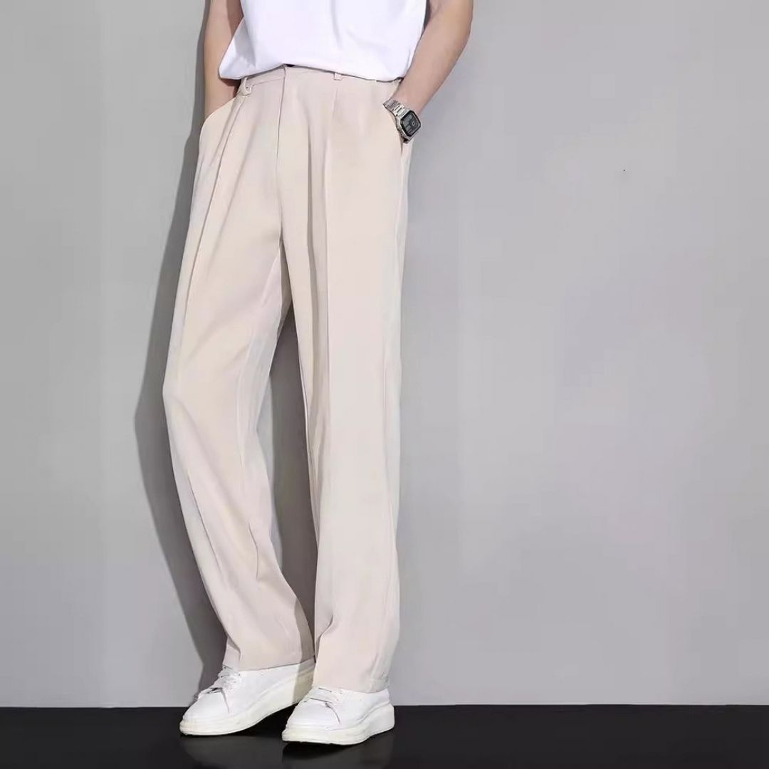 남자 여름 세미와이드 슬랙스 밴딩 쿨 아이스 스판 정장 팬츠 레이