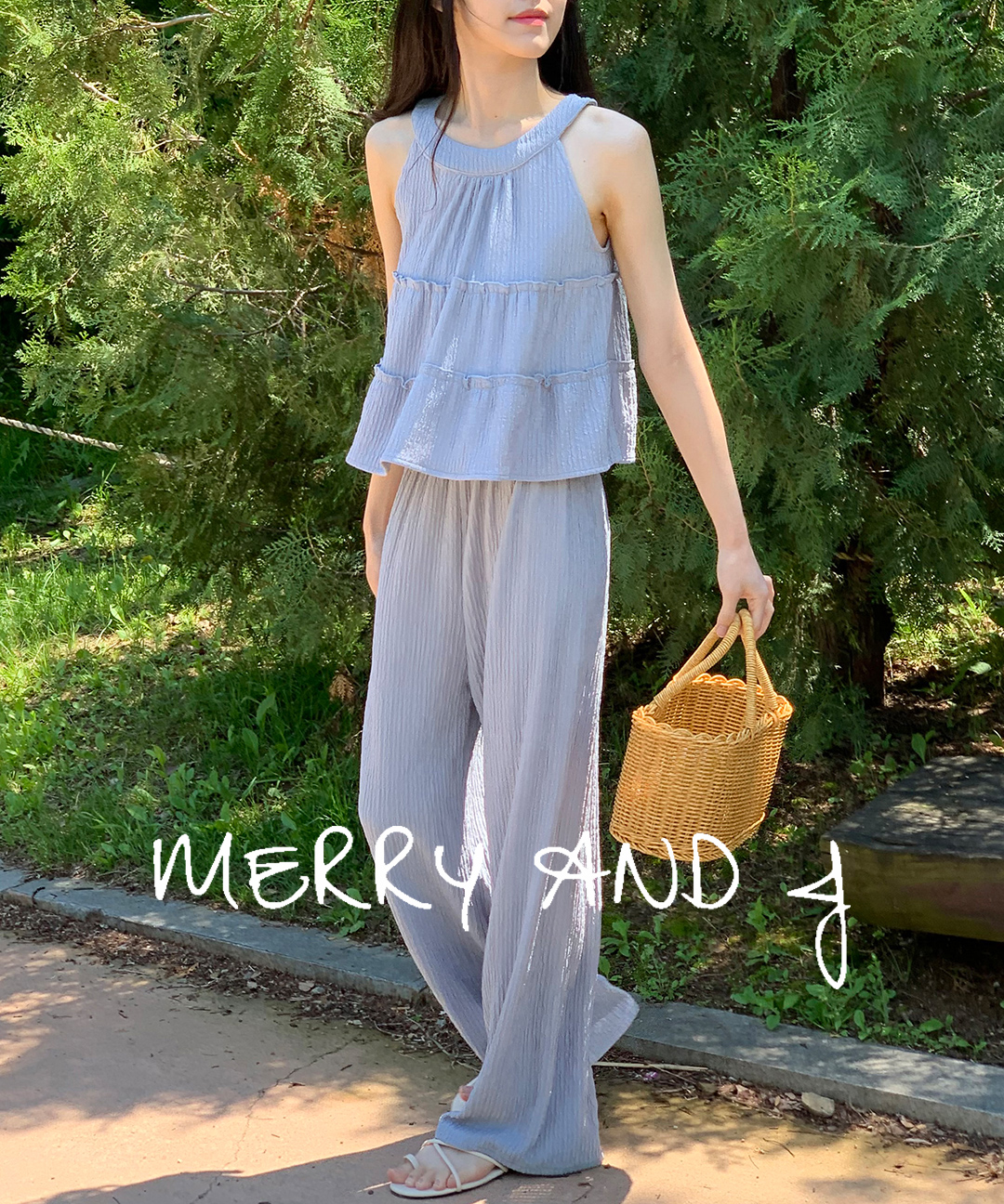[시즌오프쎄일💚]프릴 홀터넥 나시 플리츠 와이드 팬츠 세트[투피스 셋업 투피스세트 여름투피스 나시투피스 플리츠세트 휴양지투피스 셋업투피스 여름투피스세트 플리츠투피스 홀터넥투피스]