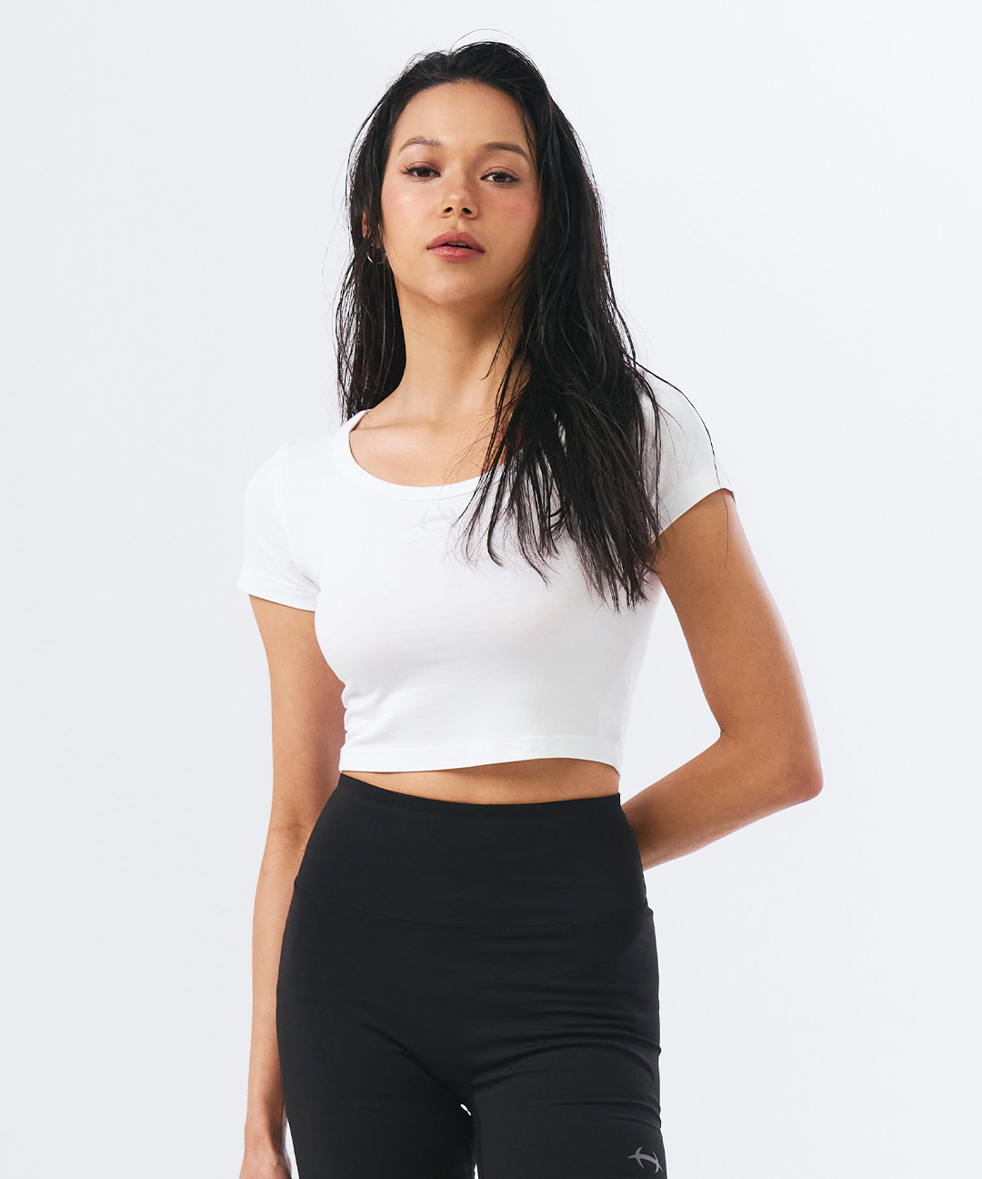 우먼스 심볼 딥 네크 크롭 숏 슬리브 (White)
