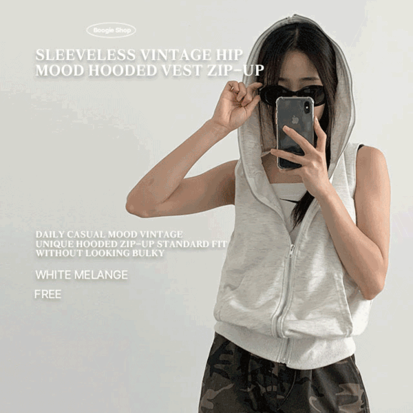 [여름아우터] 크롬 y2k 지퍼 후드 조끼 집업