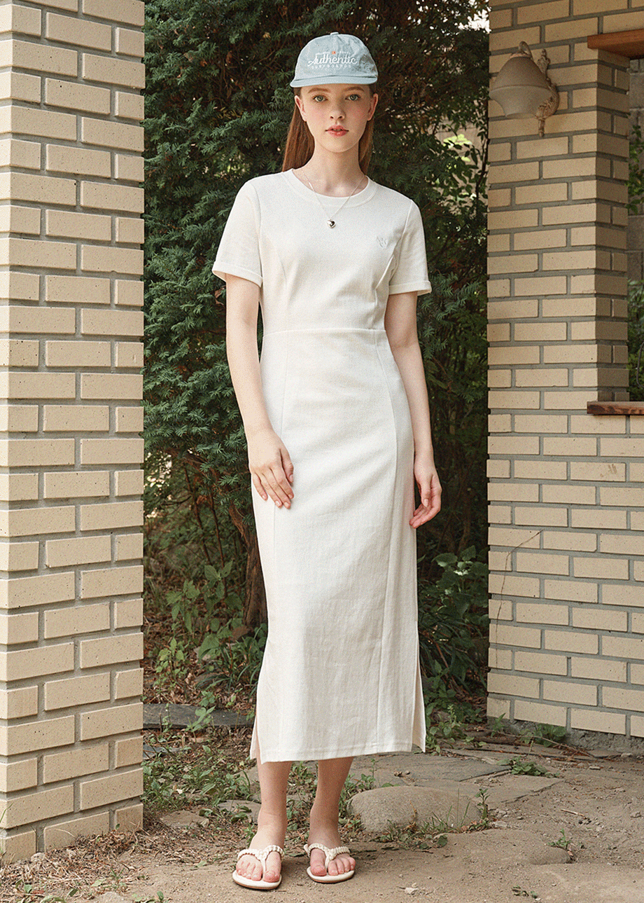 [44-120] Easy Cotton Slit Long Dress 이지 코튼 슬릿 롱 드레스 (여름-꾸안꾸-마실룩-데일리룩-이지웨어-출근룩-베이직-다이마루-라운드넥-슬림핏-H라인-슬릿-빅사이즈-자체제작)