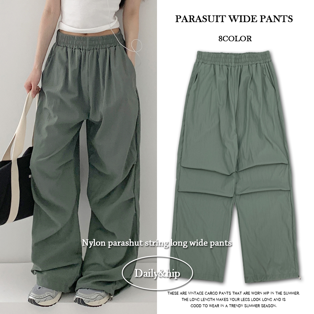 🧊쿨링나일론*[💜기획가/모델극찬/투웨이!] *시원하고 가벼운* 페톤 나일론 밴딩 스트링 파라슈트 롱 와이드 팬츠 #여름바지 #여름팬츠 - 8color