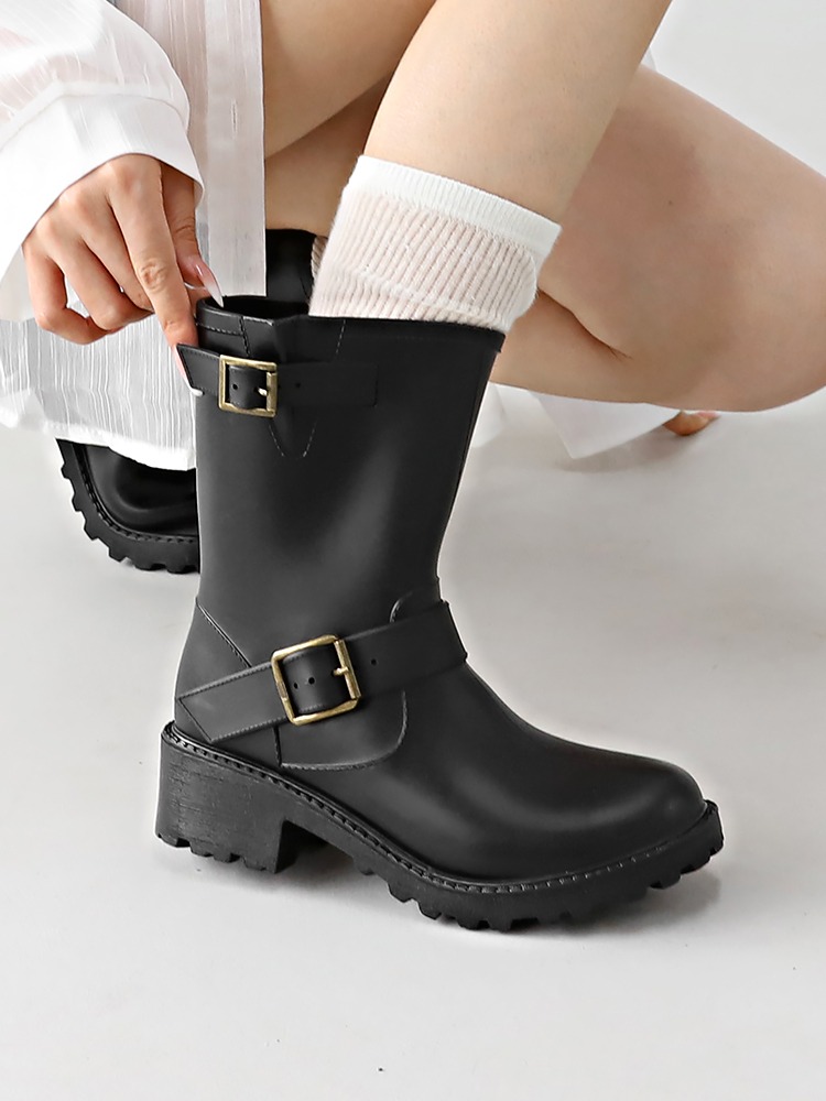 바일렌 두가지굽 더블 버클 힙스터 미들 레인부츠(3/5cm) 11167