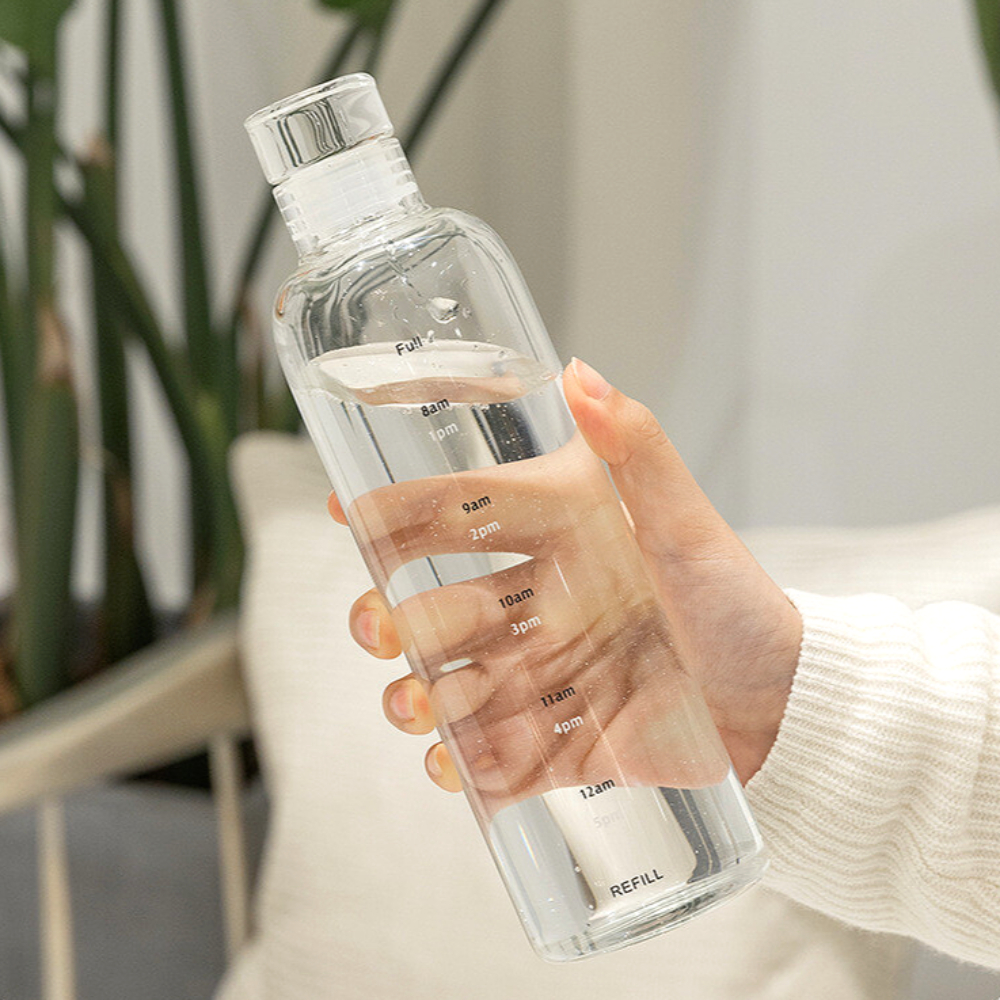 내열 유리 글라스빅 보틀 투명 텀블러 시간 눈금 물병 500ml