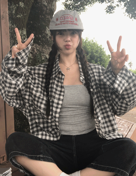 비벤린넨오버핏체크남방