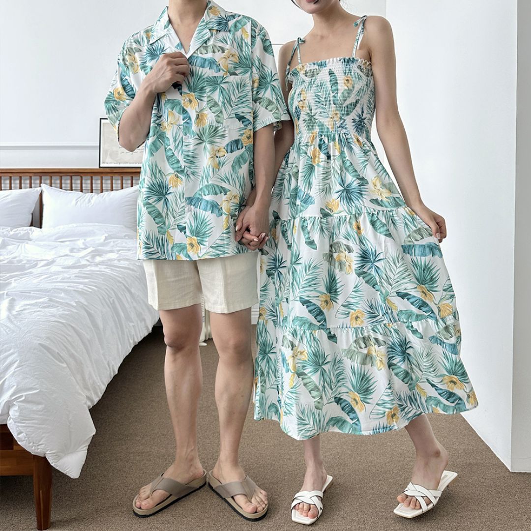 남녀 커플 비치웨어 하와이안 썸머룩 나시 원피스 꽃남방 허니문 바캉스 신혼여행 MO87