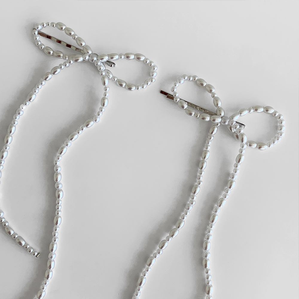 [무배] 케일라 진주 롱 리본 실핀 러블리 하객룩 헤어핀