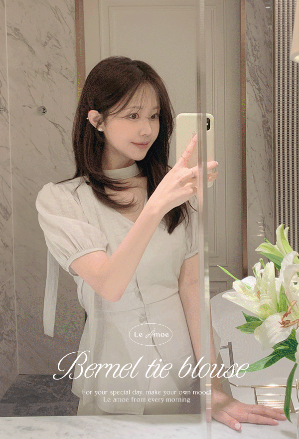 [🌿하객룩/타이블라우스][MADE] 베르넬 브이넥 타이 블라우스