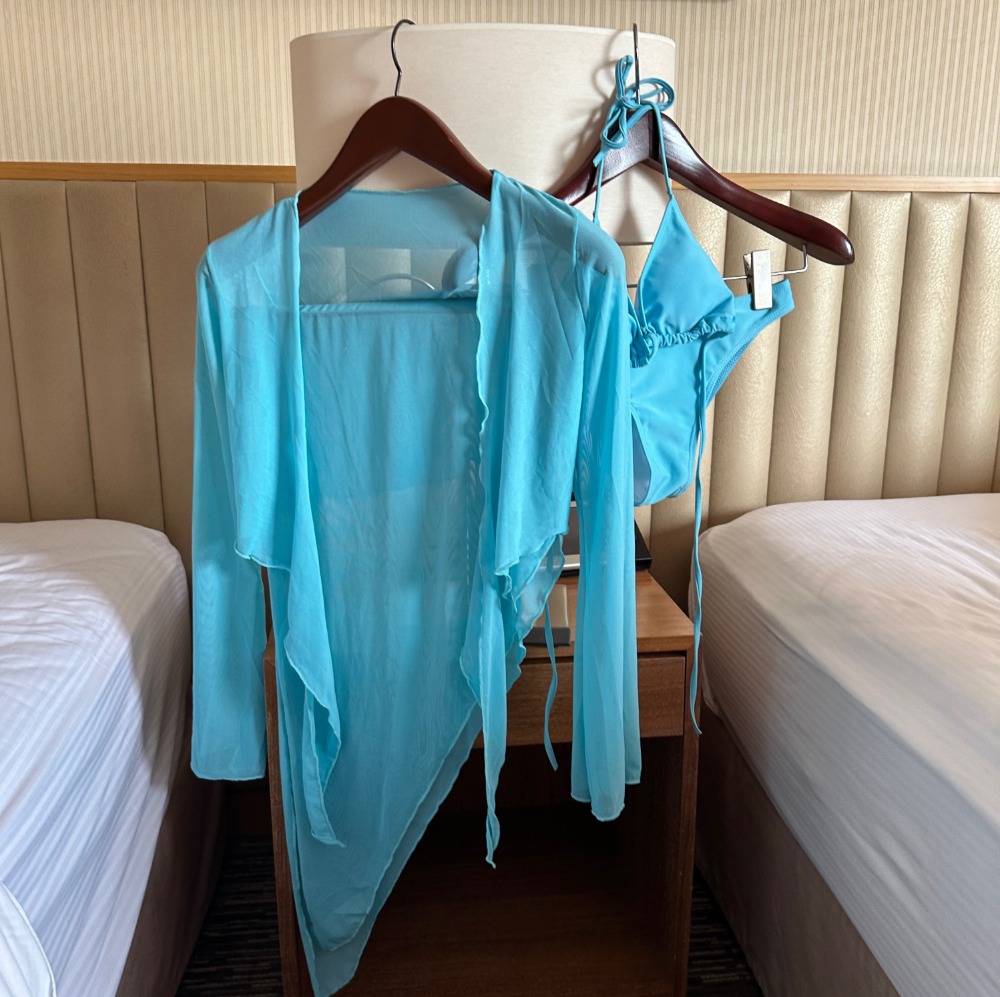 에메랄드 4피스 쿨톤 커버업 가디건 스커트 비키니 세트