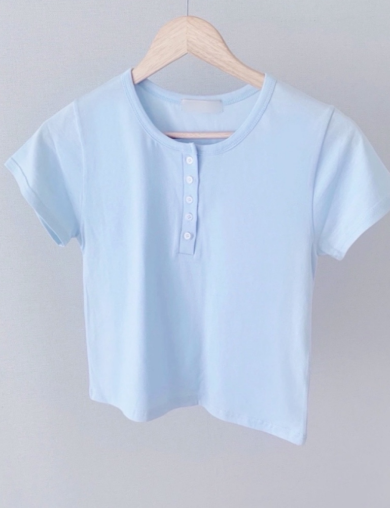 [여쿨강추🩵] Skyblue button T 여름쿨톤 여쿨 소라 반팔 버튼 티셔츠