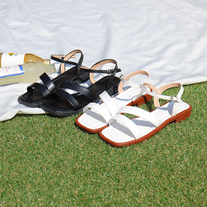 레미던 사선스트랩 탄력창 플랫샌들(2cm)
