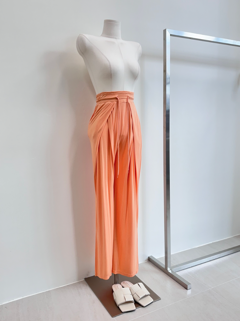 핀탁주름 하이웨스트 오렌지 와이드팬츠 / 하이웨스트바지 핀탁바지 와이드바지 찰랑찰랑 얇은면 시원한원단 바캉스룩 휴가룩 밴딩바지 밴딩와이드