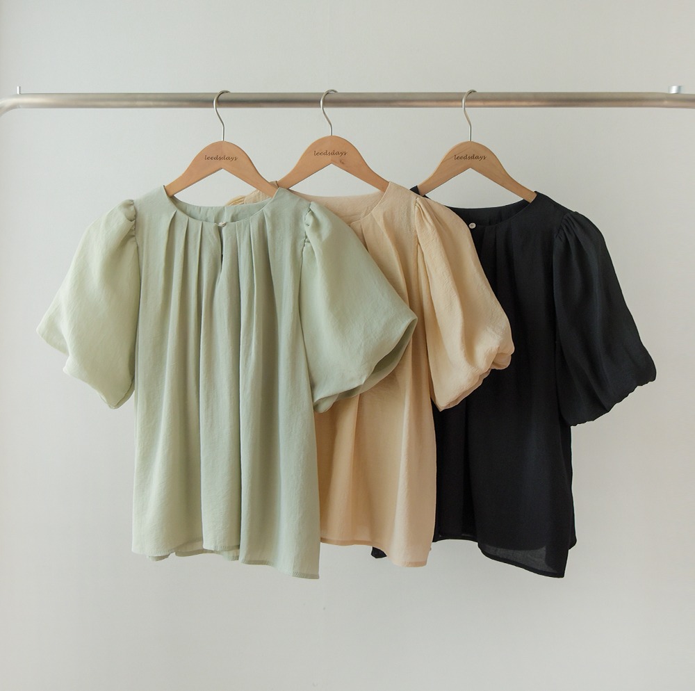 무무 텐셀 루즈핏 셔링 퍼프 소매 블라우스