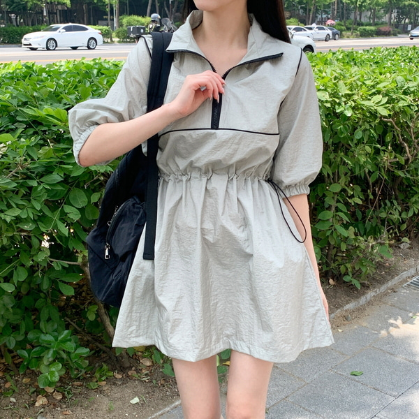 [국내생산] 반집업 아노락 반팔 미니 원피스 캐주얼 캐쥬얼 나일론 미니 포인트 배색 포인트 데일리 바스락 여름 시원한 대학생 캠퍼스룩