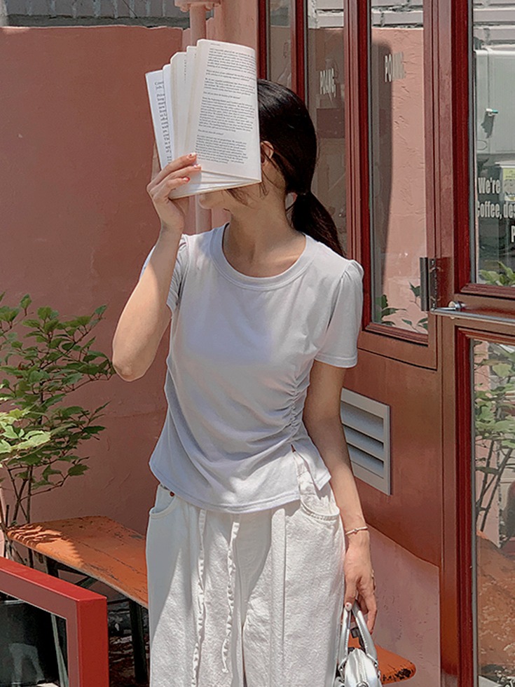 [44-120] 로버린 스판 라운드넥 셔링 반팔 티셔츠 ( 여름-데일리룩-데이트룩-캐주얼룩-러블리룩-공항룩-휴가룩-휴양지룩-바캉스룩-비치룩-마실룩-빅사이즈-120사이즈-자체제작-신축성-통통녀 )