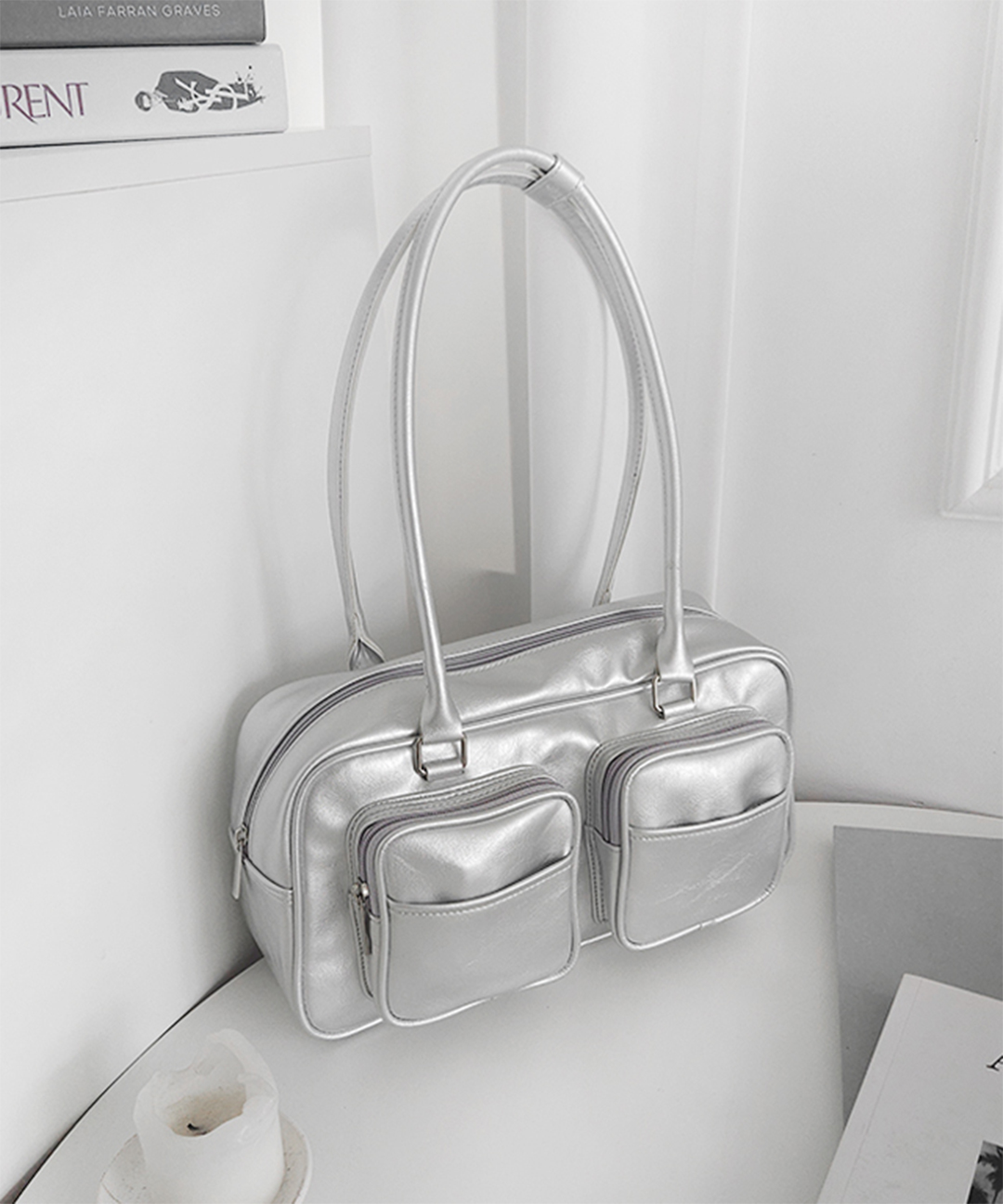 [당일발송]4col 스퀘어 투포켓 실버백 롱핸들 캐주얼 긱시크 너드 데일리백 와이드 데이트룩 여행 보조가방 여성 바게트 숄더백 mo2334