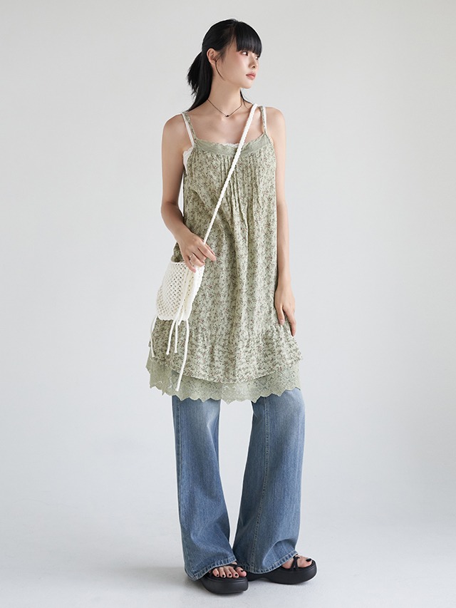 빅사이즈 55-88 케윌 플라워 레이스 뷔스티에 레이어드 나시 롱 원피스