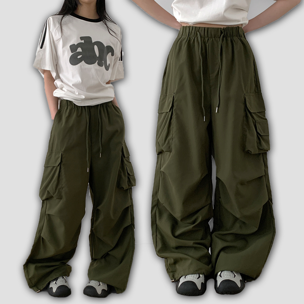 [2way/카고,와이드] 썸머! 힙한, 나띠 투포켓 와이드 롱 나일론 투웨이 팬츠 고프코어 파라슈트 4color