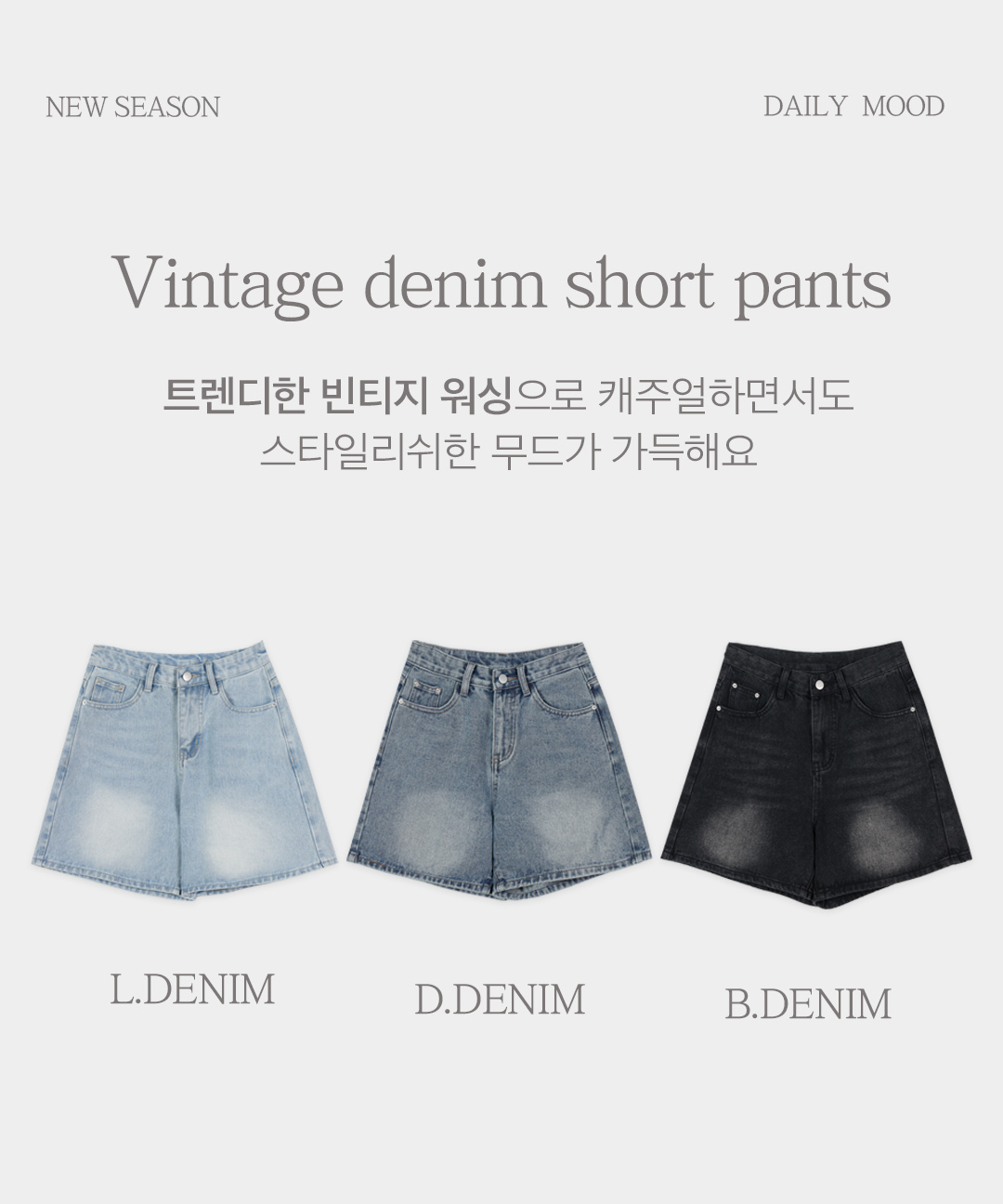 스웻 빈티지 데님 숏팬츠 (25~32) (데님반바지-여름반바지-핫팬츠-숏팬츠-워싱데님-체형커버-캐주얼룩-빅사이즈-데일리룩-청반바지-여름데님-빅사이즈데님팬츠-군살커버)