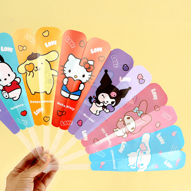 5개 1세트 산리오 캐릭터 접이식 휴대용 경량 부채 포차코 폼폼푸린 헬로키티 쿠로미 마이멜로디 시나모롤