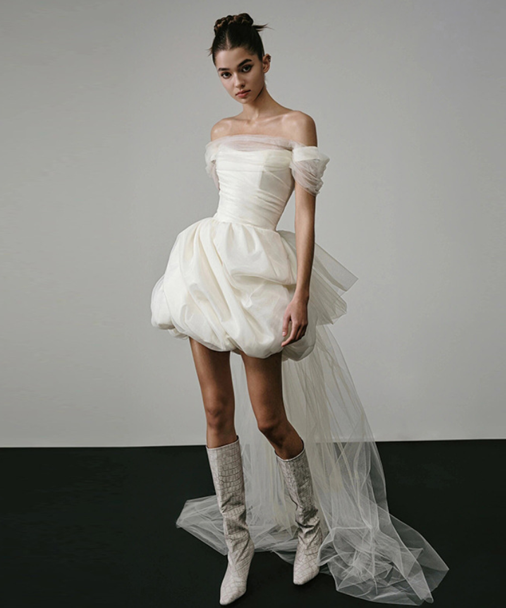 오프숄더 미니 웨딩드레스 셀프웨딩촬영 브라이덜샤워