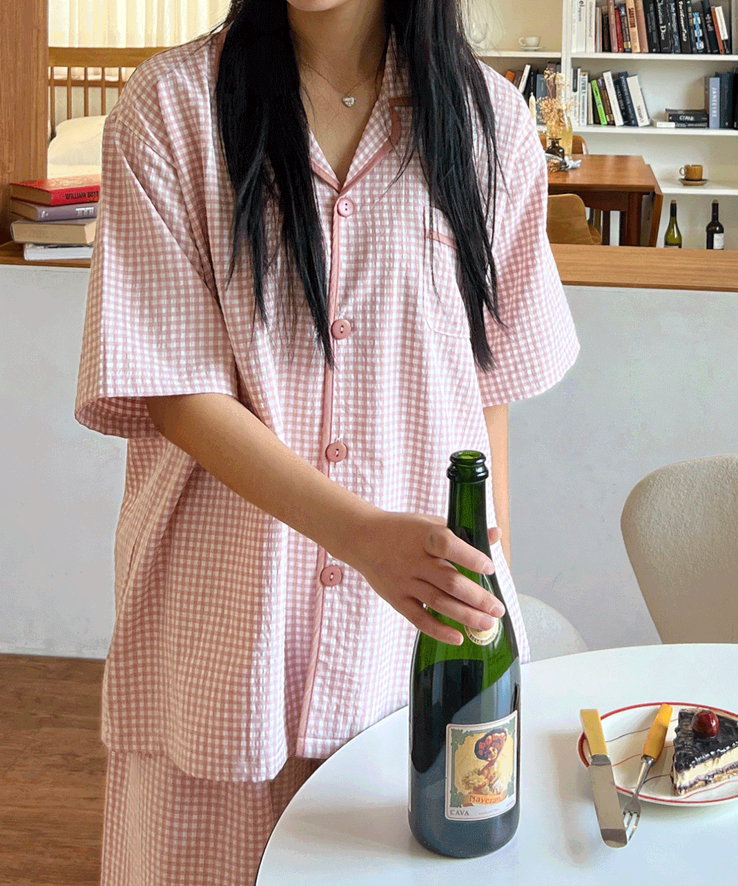💚무료배송💚빈티지 체크 반팔 파자마세트 여름 잠옷세트 신상