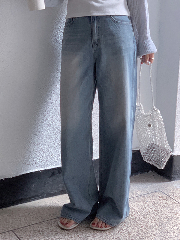 로빈 여름 와이드 데님 pants (후들데님/여름청바지/일자핏/하체커버/연청데님/데일리)