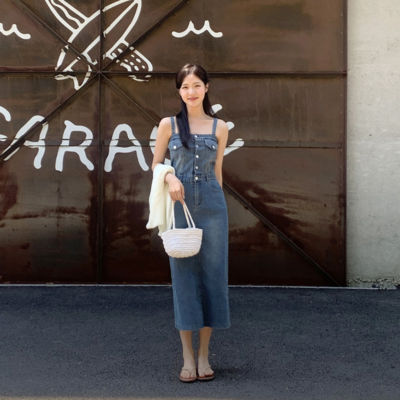 [💣빅 할인 블프 특가][허리밴딩/데일리룩/페스티벌] 플랩포켓 롱 워싱 데님 나시 데님 롱치마 레이어드원피스 뷔스티에 청치마 뷔스티에원피스 나들이룩 원피스청원피스 op15785