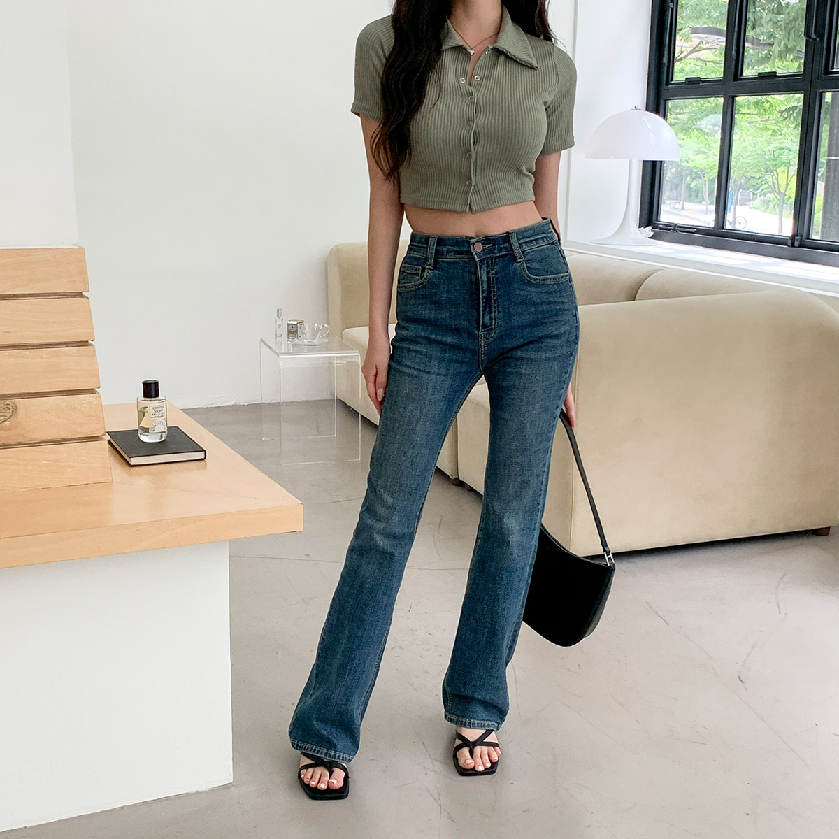 몽레르 히든밴딩 베이직 슬림 세미부츠컷 데님 팬츠