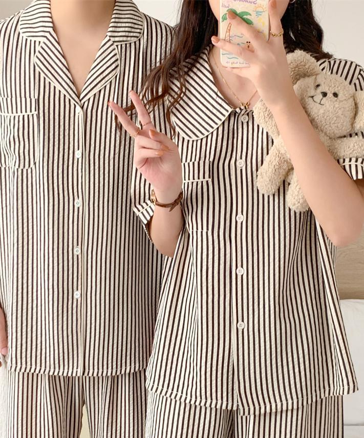 [직진🚀] 리호 여름 반팔 커플잠옷 시어서커 파자마 세트 스트라이프 홈웨어