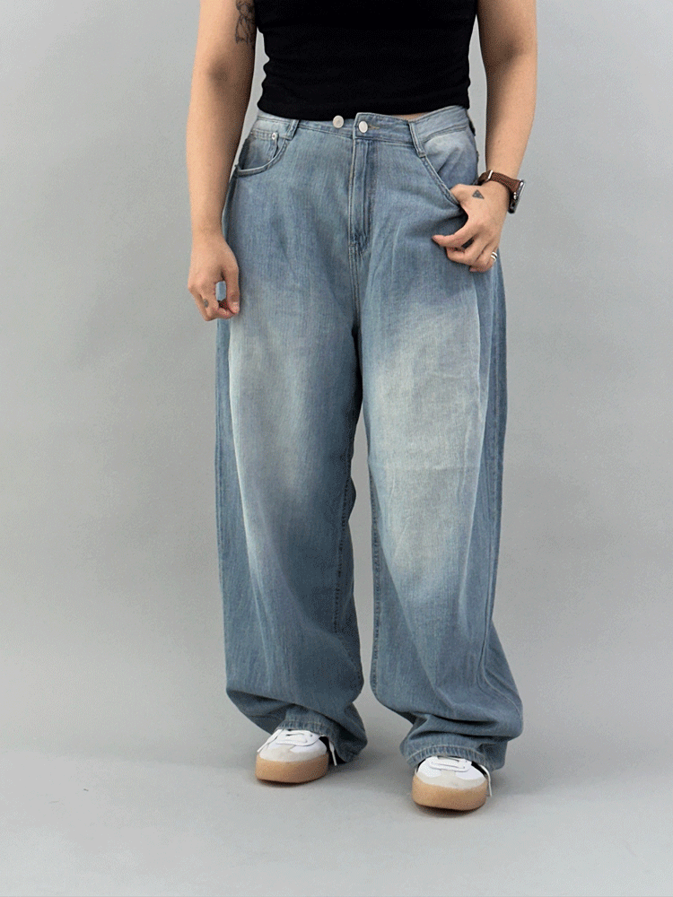 1283 썸머 핀턱 벌룬 워싱 와이드 데님 팬츠[1color/S-L]