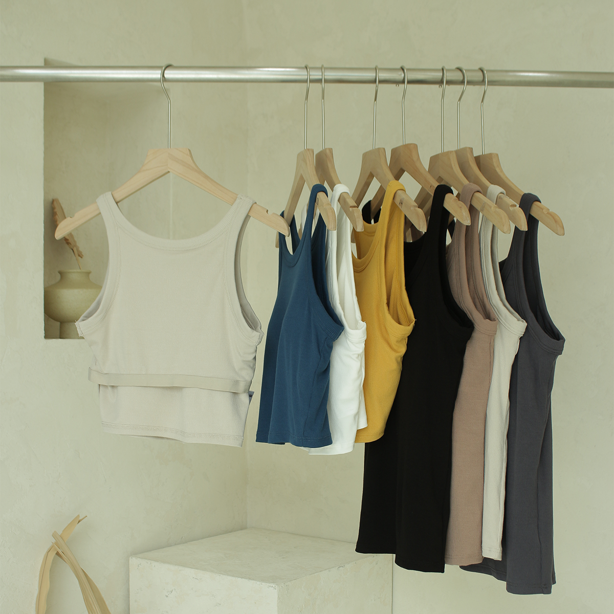 골지 탱크 브라탑나시 크롭탑 베이직탑 여름 레이어드 캡나시 내장 패드부착(RN-011,012)
