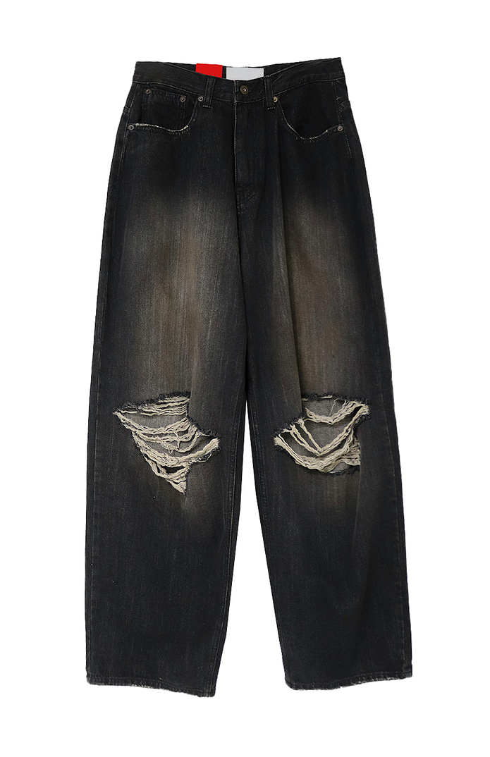 BLACK TONE DARK VINTAGE DAMAGE WIDE DENIM 블랙톤 다크 빈티지 구제 데미지 와이드데님