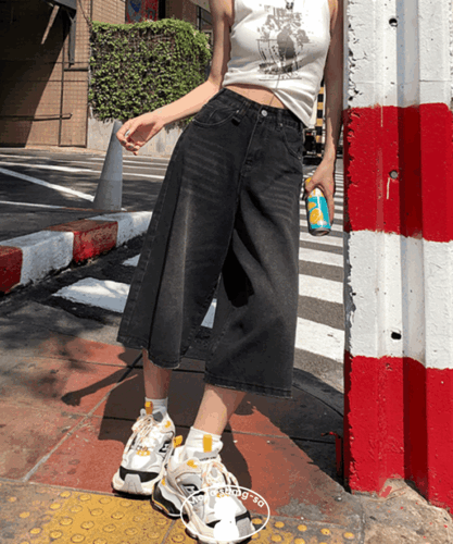 y얼리어텀k 흑청 데님 버뮤다 하프팬츠 7부 바지