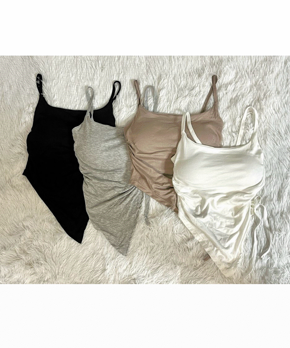 [캡내장] 사선 스트링 나시 셔링 민소매 끈나시 탑