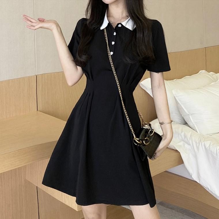 편한 20대 인기 룩 예쁜 10대 데이트 하트단추 카라배색 반팔 학생 원피스 여자 기본 패션