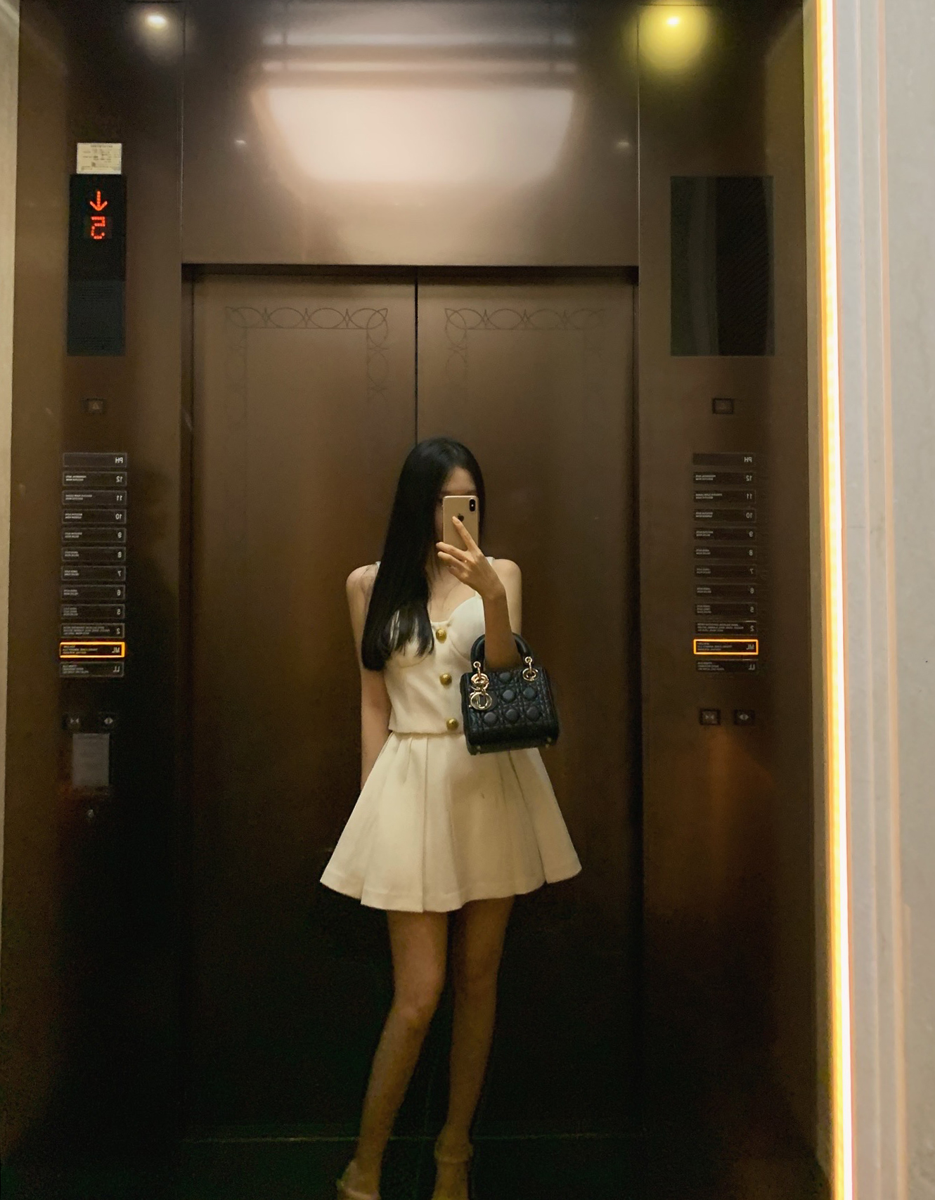 [수입 highquality] 골드 버튼 명품 플레어 플리츠 스커트 투피스 셋업 화이트