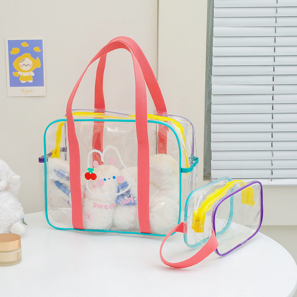 션, [/바로배송!!/여행갈때 꼭!!투명썸머짐가방!!수납력짱!!] pvc 방수 투명 사각비치백 (2컬러/2사이즈)
