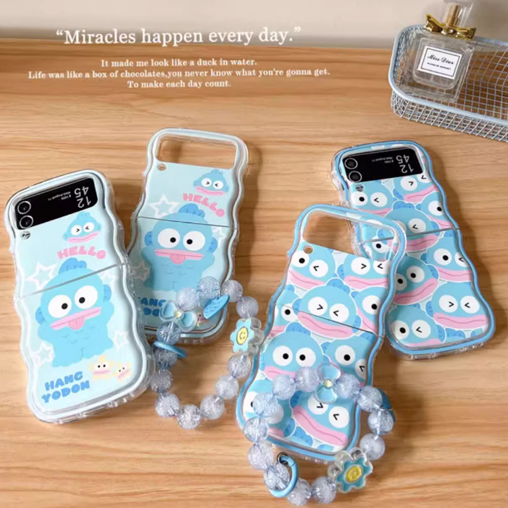 갤럭시 Z 플립6 플립5 플립4 플립3 제트 FLIP 블루 물고기 캐릭터 물결 웨이브 구슬 팔찌 핸드폰 케이스