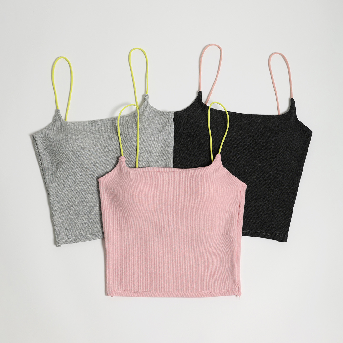 캡 내장 일자넥 컬러 끈나시 이너 레이어드 나시 탑 수면브라 브라탑 러닝 캐미솔
