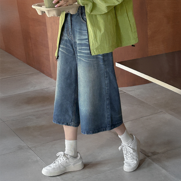 [빅사이즈]이블렛 헨피즈 워싱 7.5부 버뮤다 데님팬츠 제이스타일