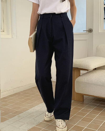 (당일)원핀턱 여성치노 팬츠 세미배기 일자기본핏 와이드 단정한 여자 면바지(80994)