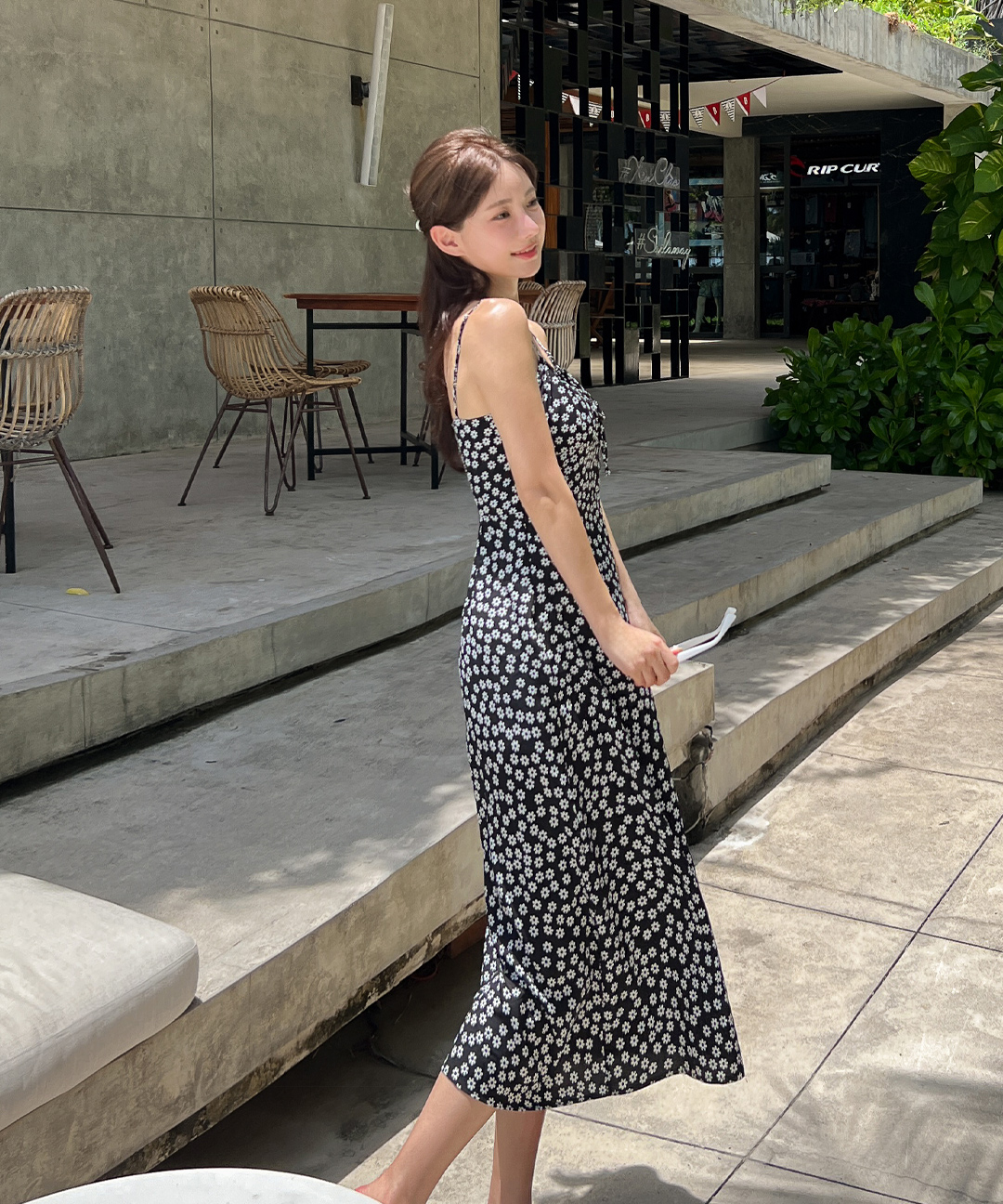 [진열안함][44~55💗] 프라하 원피스 여름 비치웨어 휴양지룩 바캉스룩 나시 잔꽃 플라워 비치 롱 맥시 끈